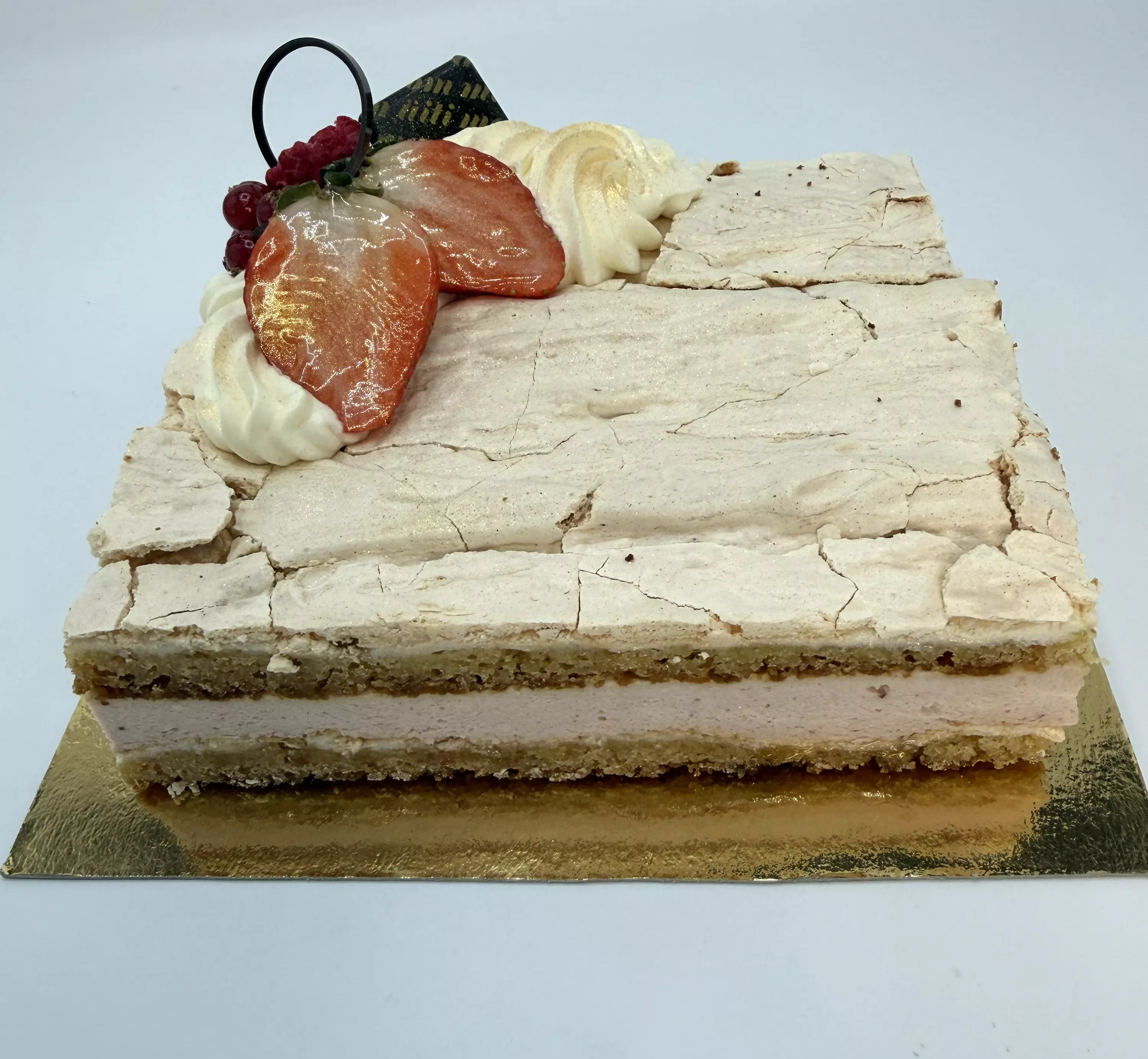 Mansikka, raparperi, KANANMUNAN valkuainen, sokeri, laktoositon tuoreJUUSTO (pastöroitu kirnuMAITO, KERMA, suola, laktaasientsyymi, hapate), laktoositon KERMA (KERMA, E407), LIIVATE