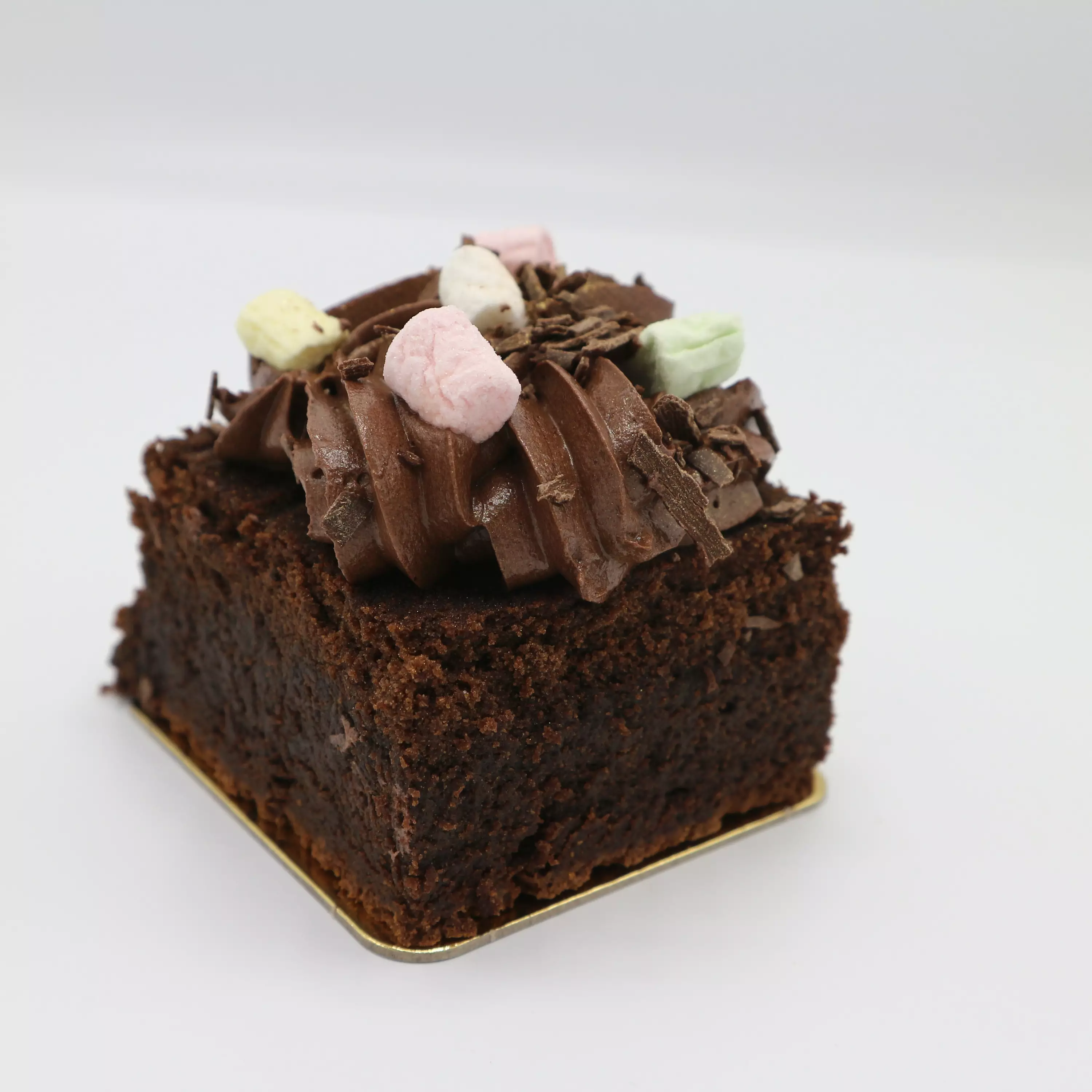 Suklaanystävän ehdoton valinta, tuhti suklaapohja ja päällä kahvilla maustettu suklainen mokkakreemi. Koko komeuden kruunaa vielä koristelun vaahtokarkit ja suklaalastut. Pohjan sisältämästä suklaasta johtuen suosittelemme ottamaan leivoksen huoneenlämpöön hetkeksi ennen tarjoilua. Leivos valmistetaan gluteenittomassa leipomossamme ja on luontaisesti gluteeniton eli ei sisällä vehnää, ohraa, ruista eikä kauraa.