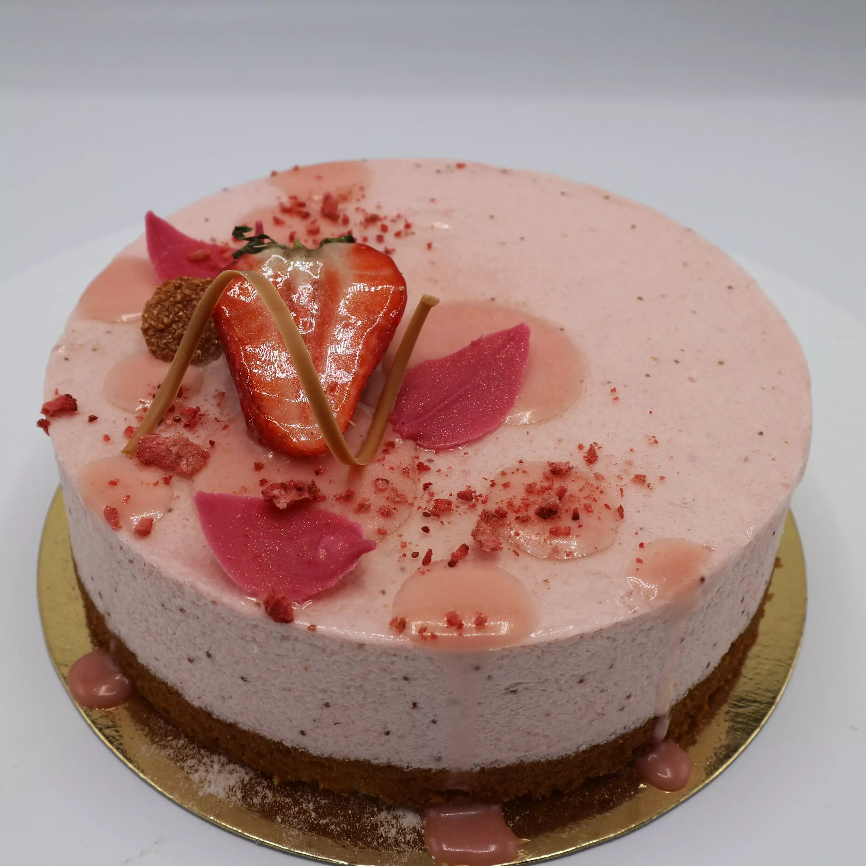 Gluteeniton mansikka-raparperikakku on kesänmakuinen juustokakku, jossa raikas raparperi ja makea mansikka täydentävät toisiaan. Kakussa on itsetehty vaalea pohja ja raikkaan moussen sisällä on maukas raparperihillosydän. Kakku on päällystetty kiilteellä ja koristeltu vaaleanpunaisella suklaaganachella, mansikalla ja erilaisilla suklaakoristeilla. Kakku leivotaan gluteenittomassa leipomossamme ja on luontaisesti gluteeniton eli ei sisällä vehnää, ohraa, ruista eikä kauraa.
