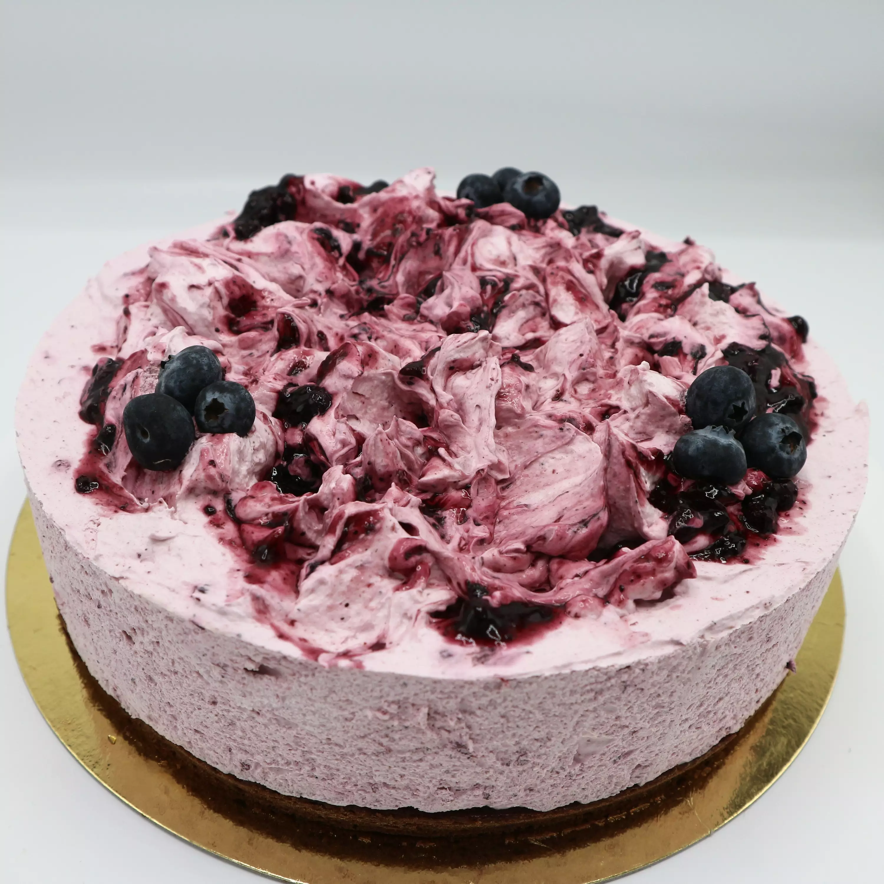 Mustikkahyydykekakku on vegaaninen vaihtoehto, joka maistuu kaikille. Kakku on valmistettu kauratuorejuustosta,