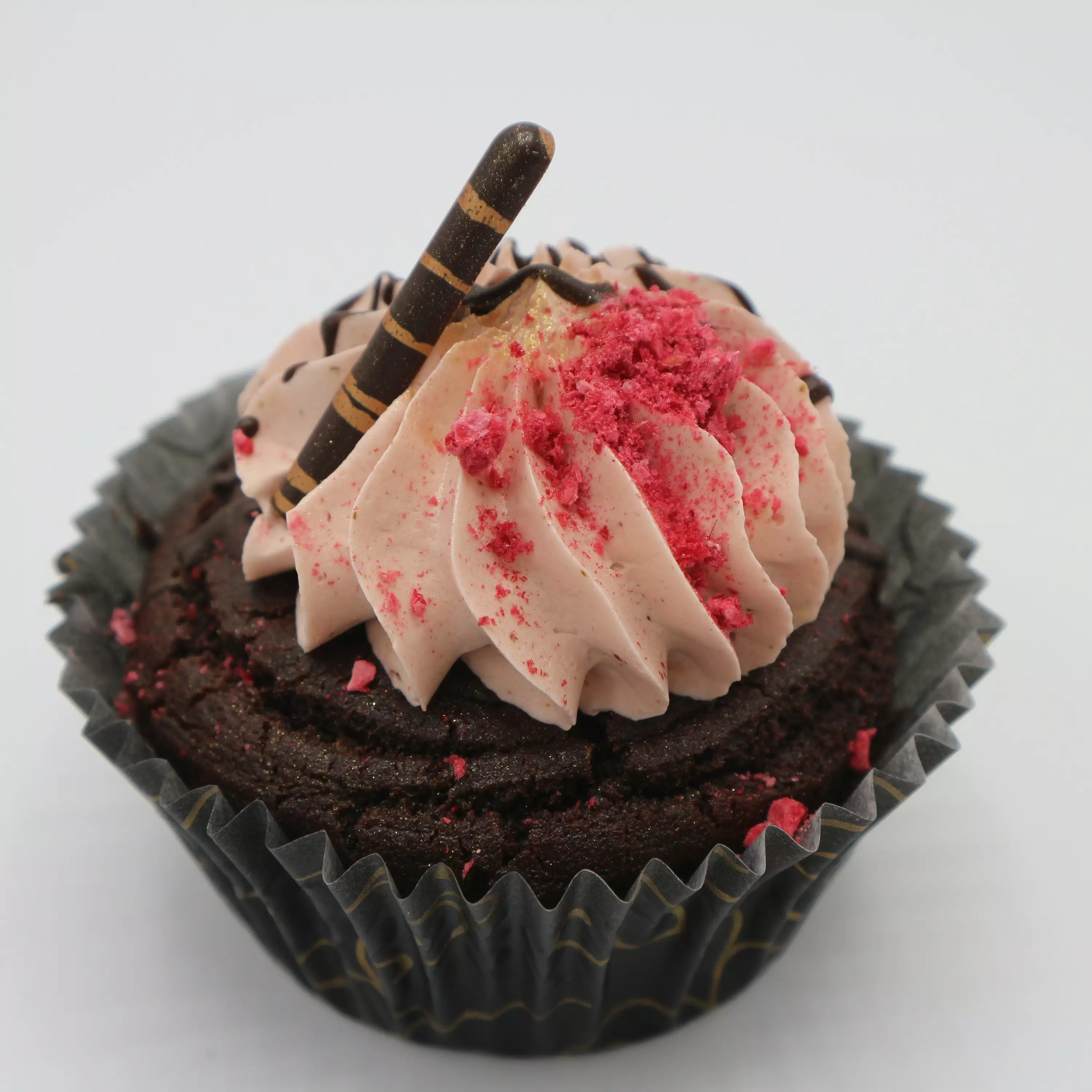 Gluteeniton ja vegaaninen suklaa-marjamuffinssi kätkee sisäänsä vadelmahillosydämen ja on kuorrutettu näyttävästi marjakreemillä. Koristeena muffinssissa on suklaata ja vadelmaa. Leivos valmistetaan gluteenittomassa leipomossamme ja on luontaisesti gluteeniton eli ei sisällä vehnää, ohraa, ruista eikä kauraa.