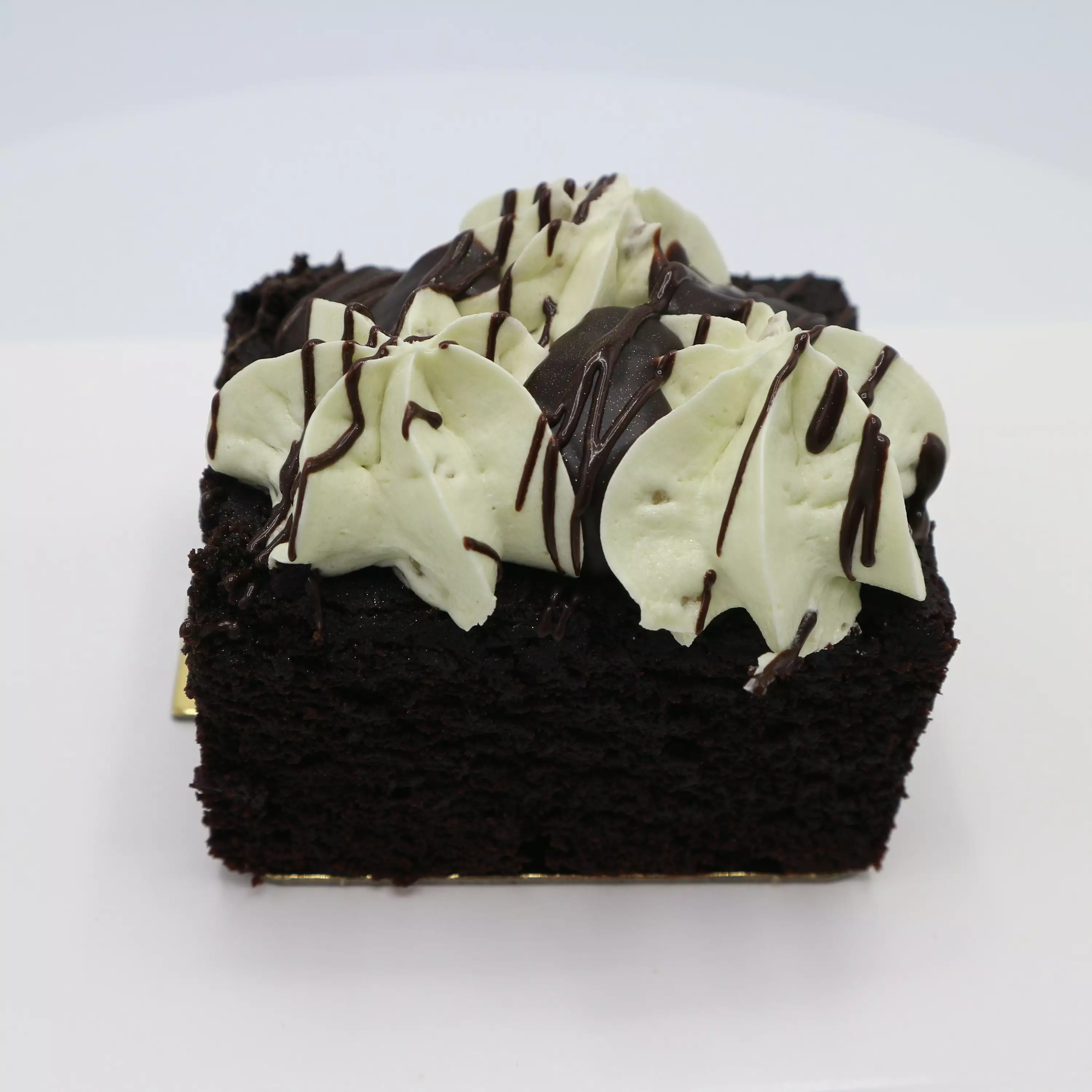 Tässä gluteenittomassa ja vegaanisessa leivoksessa yhdistyvät klassisesti suklaa ja minttu. Tuhti ja suklainen leivospohja kuorrutetaan minttusuklaakreemillä ja minttusuklaaganachella, muuta tämä leivos ei kaipaakaan. Leivos valmistetaan gluteenittomassa leipomossamme ja on luontaisesti gluteeniton eli ei sisällä vehnää, ohraa, ruista eikä kauraa.